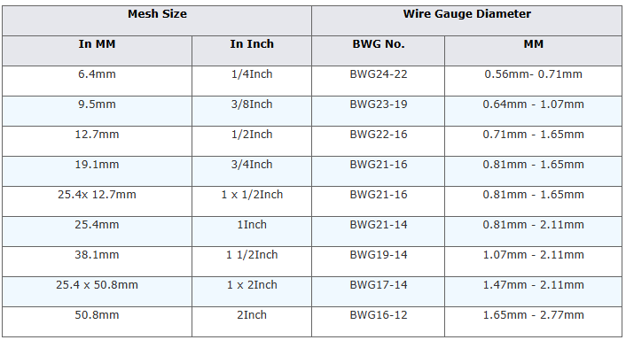 General specifications of welding mesh: 3/4 “, 1/2 “, 1 “, 1/4 “, 3/8”